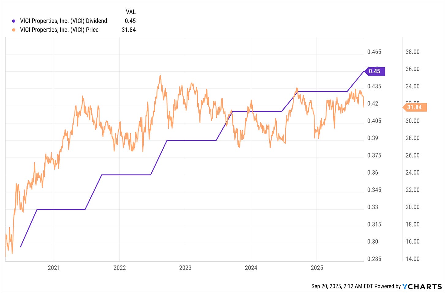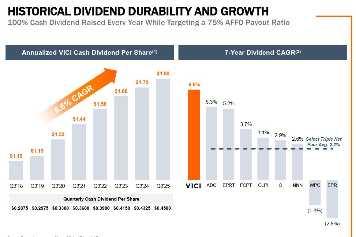 It is also important to note that dividend growth is the hero of this story, since VICI’s share price has been trading sideways since 2022.
